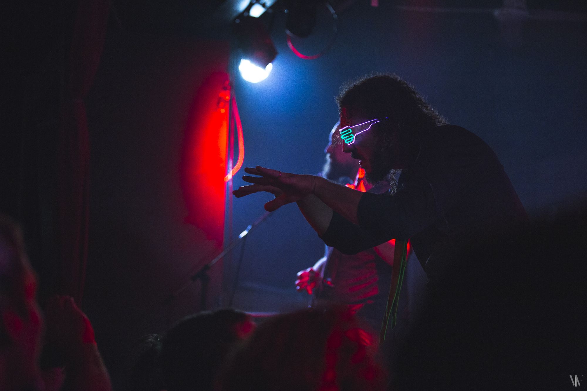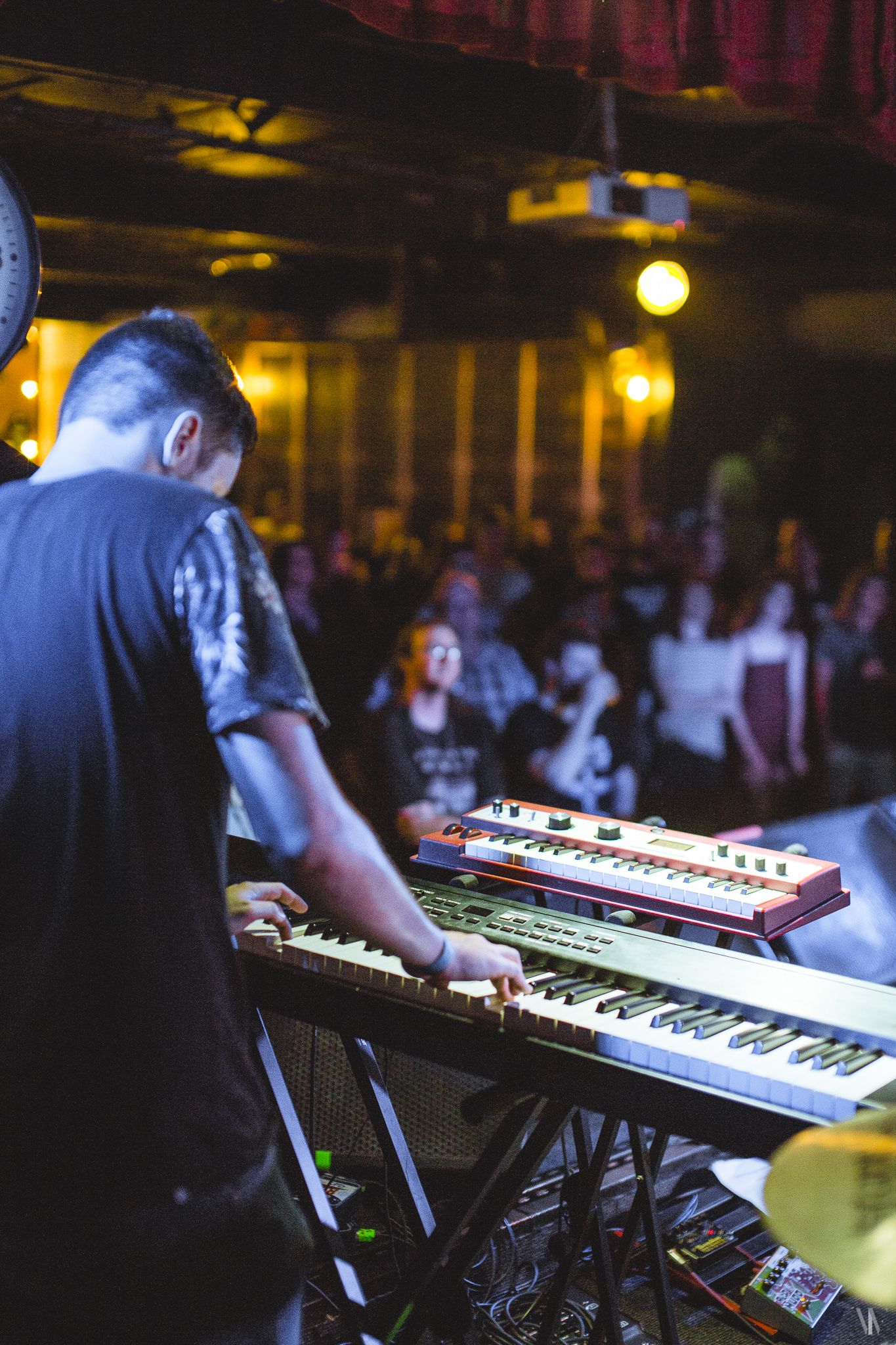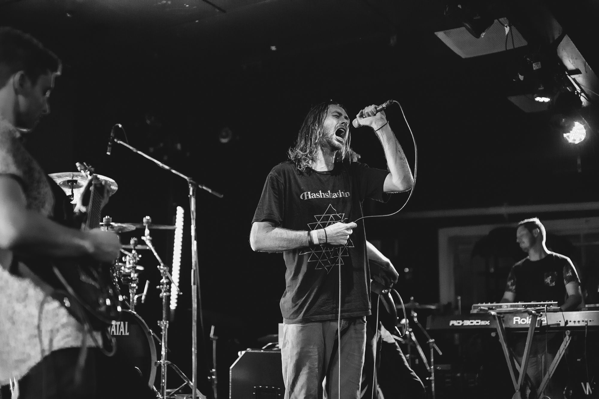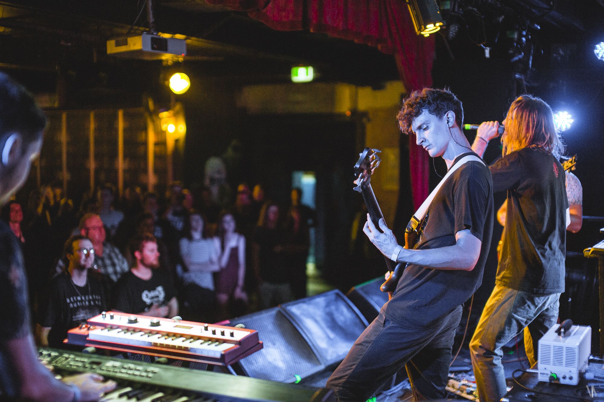 A brief lull in the night’s proceedings gave way for Archetypes. While not much of a fan myself, the music was executed tightly enough and the frontman Jonah Hicks made considerable effort to engage with the crowd. In amongst cringe-inducing air guitar and whiny, unnecessary vocals, I found it very difficult to to create a positive mental commentary on what was taking place on stage. While energetic, their music felt too repetitious and at times as if it were aiming to be progressive for the sake of seeming more diverse. Confused as to how the band were given the position of headline-support, I trudged towards the bar in search of alcohol and ear-buds.