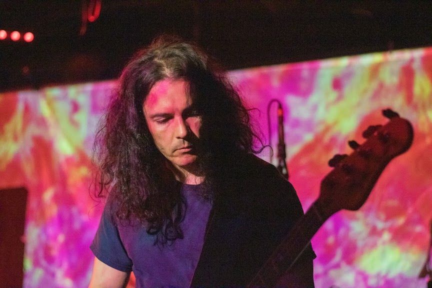 A few minutes go by, guitars tuned and pizza slices consumed, and it’s time to sit down. Lori approaches me to introduce herself. After being a fan for about a year, I’m a little surprised that I’m towering over Lori. This band creates such a monolith sound that it’s surprising to see this person as she is. I guess I just assumed Lori wasn’t so much a person as she was a formless being of psychedelia with a Les Paul Custom strapped on. That’s on me, though.