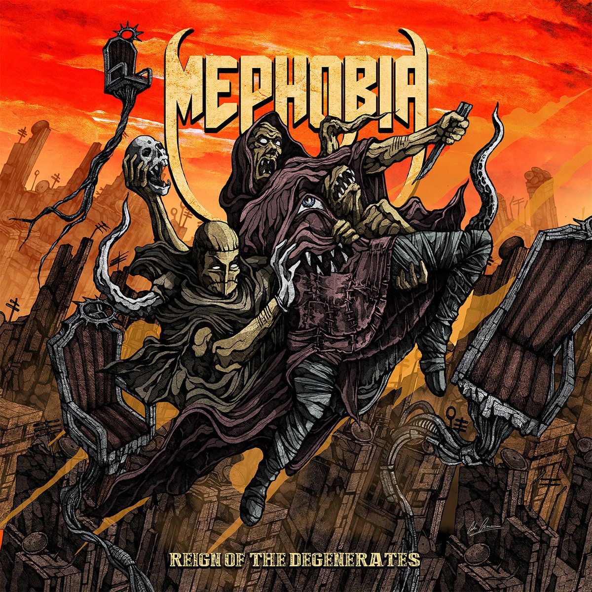 Mephobia – REIGN OF THE DEGENERATES (Cover art by Costin Chioreanu)