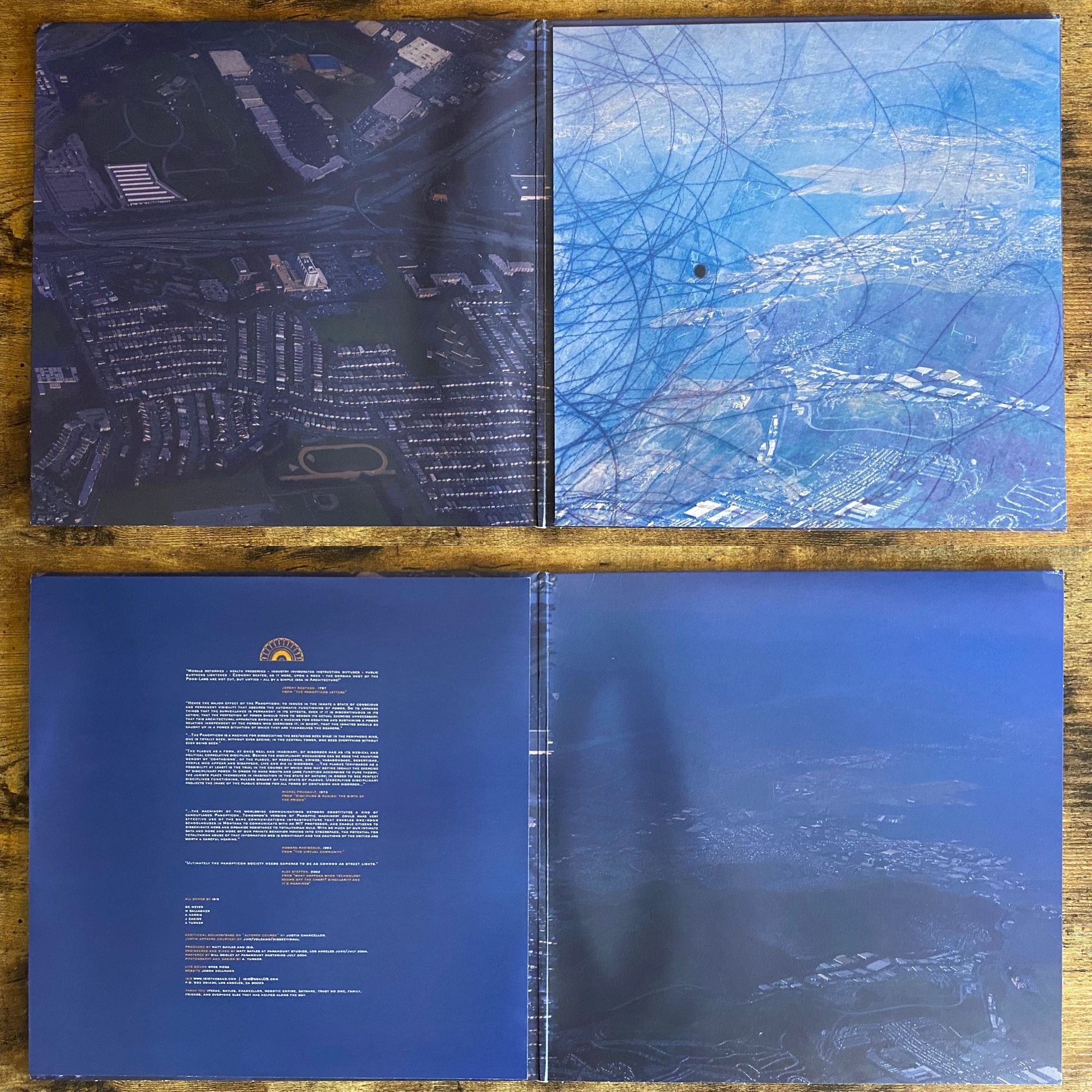 I was genuinely surprised by what I found when I opened the mailer. The glossy aerial photography I so strongly associated with the record was not to be found, but I was instead greeted by some interesting alternative artwork featuring a shadowy figure walking through the night, pairing nicely with the standard black wax. The cover gives a similar but different vibe, taking the “watcher” gaze to a much more personal and seedy headspace, to the point where it actually colors my connection to the music. It sounds darker, grimier, and more confrontational than before. Am I misremembering things? I always felt there was a sort of distance that existed on this record, more in tune with the beloved aerial photos I was so familiar with (which find their way into the presentation via the gatefold, labels, and insert).